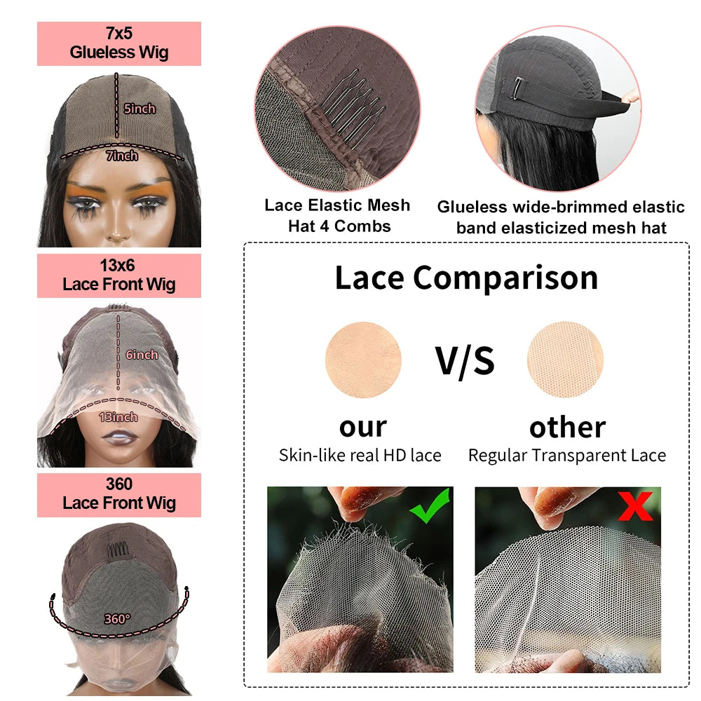 Dear buyers, this link contains 360 Lace and 13x6 Lace and 7x5 Glueless Lace Wig, please recognize the different numbers and descriptions in the ordering options to place an order, in order to prevent inconvenience to you. If you need to order 360 Lace, please choose the style with the words “360 Lace Front Wig”, if you need to order Glueless Wig, please choose the style with the words “7x5 Glueless Wig”, if you need to order a better price, please choose the style with the words “360 Lace Front Wig”, if you need to order a better price, for 13x6 lace, please select the “13x6 Lace Front Wig” style.
